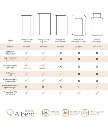 • Flat soft changing mat 70x50 cm to be put on the chest of drawers.