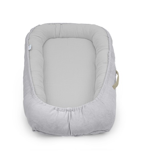 - Wypełnienie: Boki gniazdka wypełnione zostały miękką oraz antyalergiczną kulką silikonowaną. Zastosowana w dnie specjalna pianka poliuretanowa zapewnia dziecku stabilny komfort podczas odpoczynku.